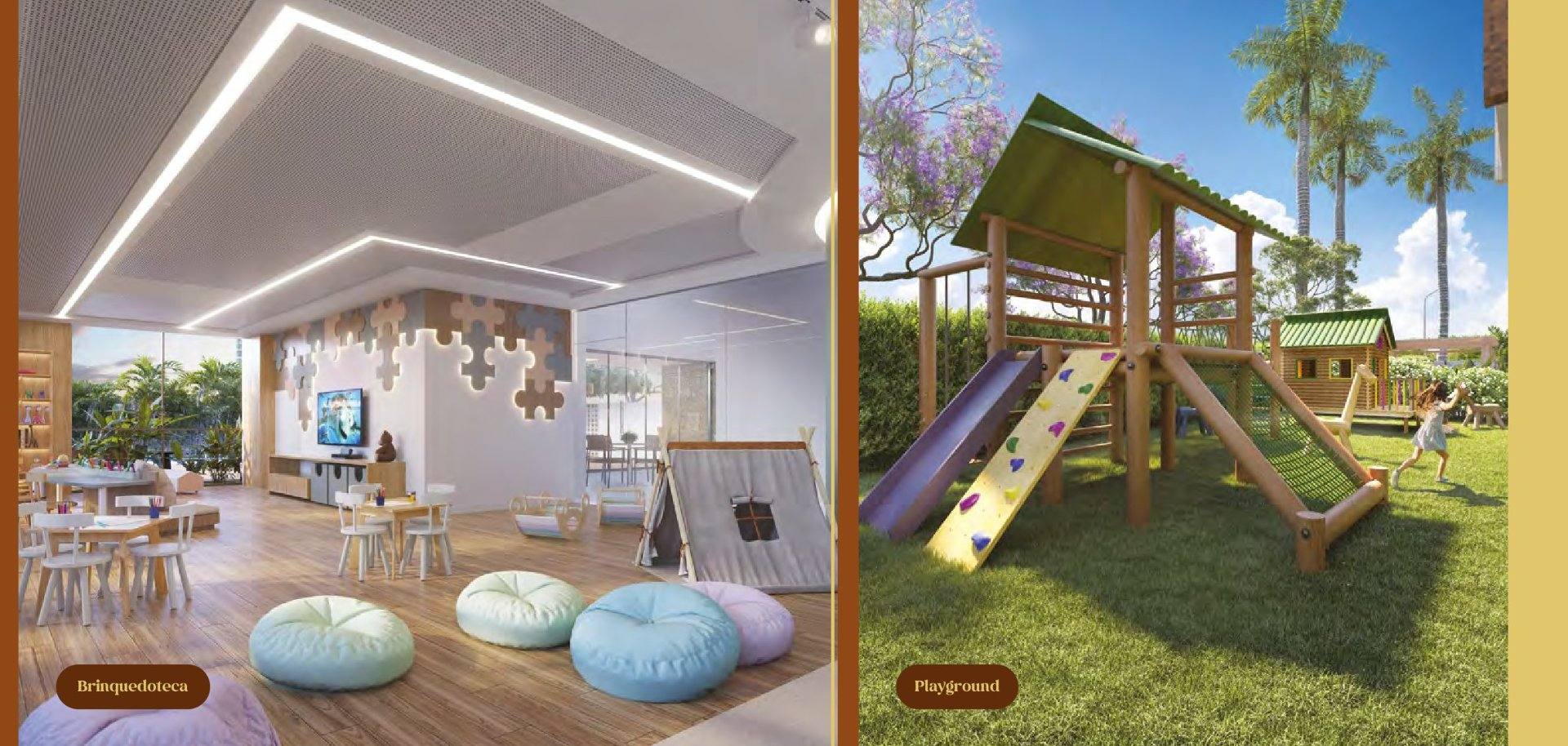 Área de lazer completa e moderna: piscina, academia, coworking, brinquedoteca, espaço gourmet, pet place, salão de festas, playground, estação influencer e muito mais.